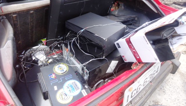 da casa diversos pertences, dentre eles televisão, dois vídeos-game, computador
